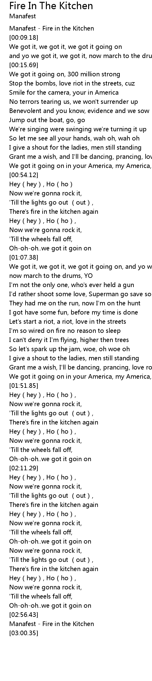 | [00:01.48] | Manafest Fire in the Kitchen |