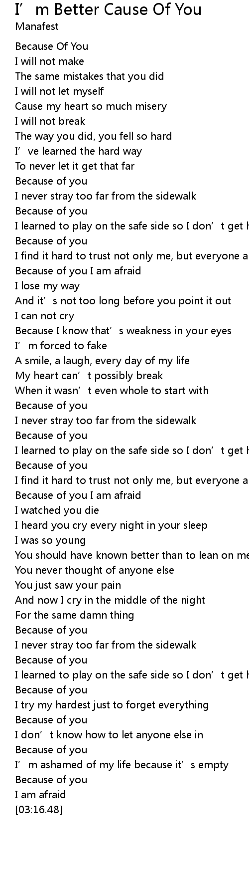| [00:50.74] | I learned to play on the safe side so I don’t get hurt |
