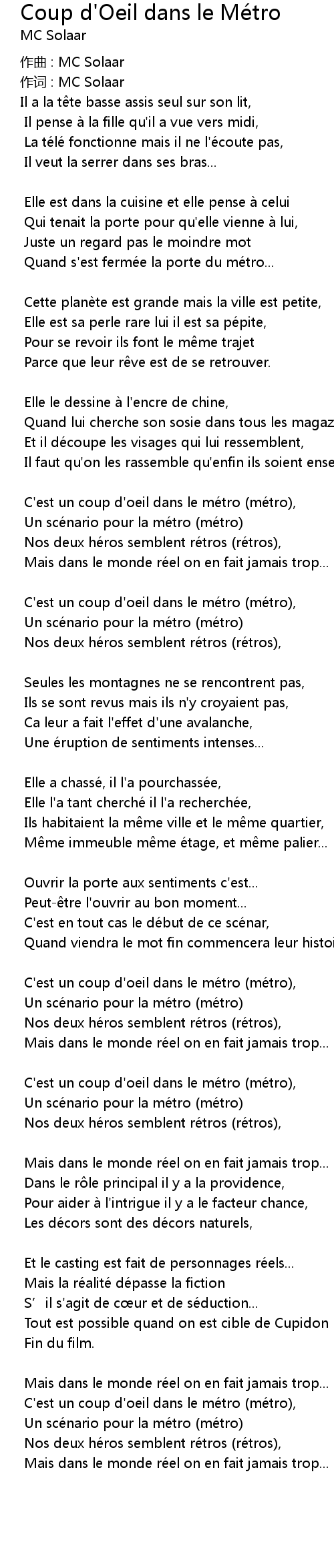 | 作词 : MC Solaar | |