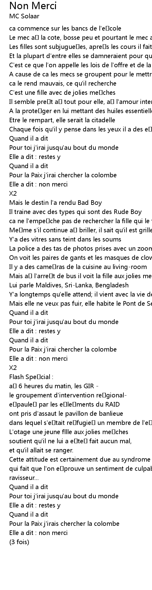 | [01:38.382] | Mais elle ne veux pas fuir, elle habite le Pont de Sèvres |