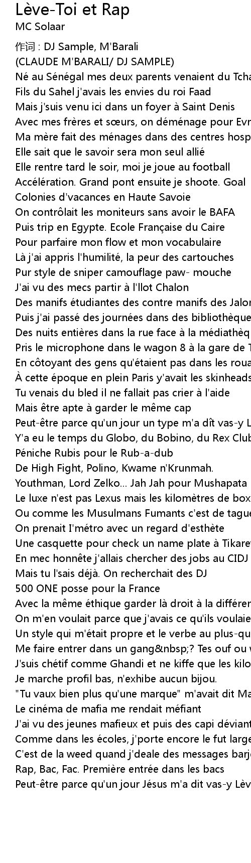 | Peut-être parce qu'un jour un type m'a dît vas-y Lève-toi et rap | |