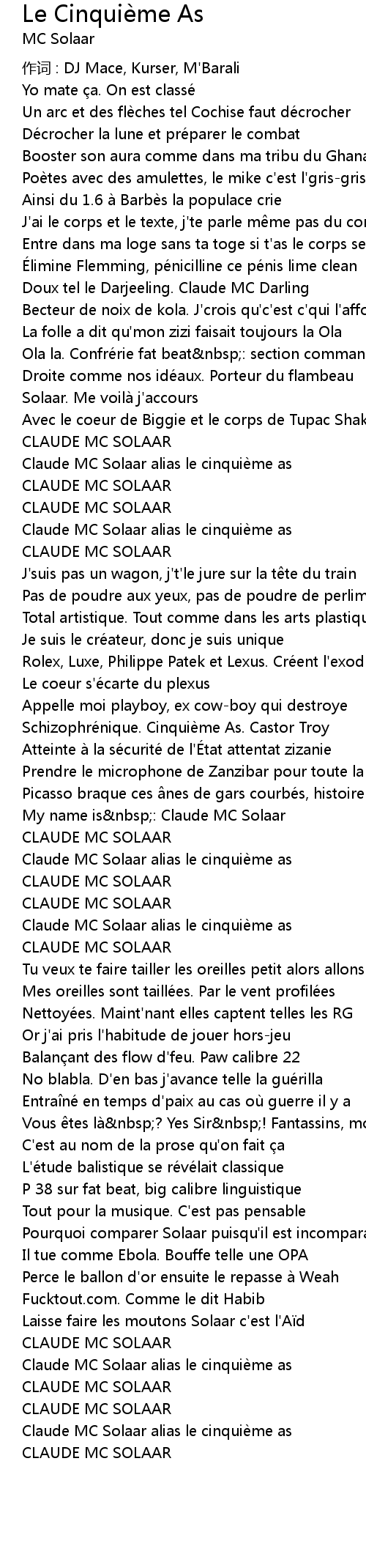 | Laisse faire les moutons Solaar c' est l' A d | |