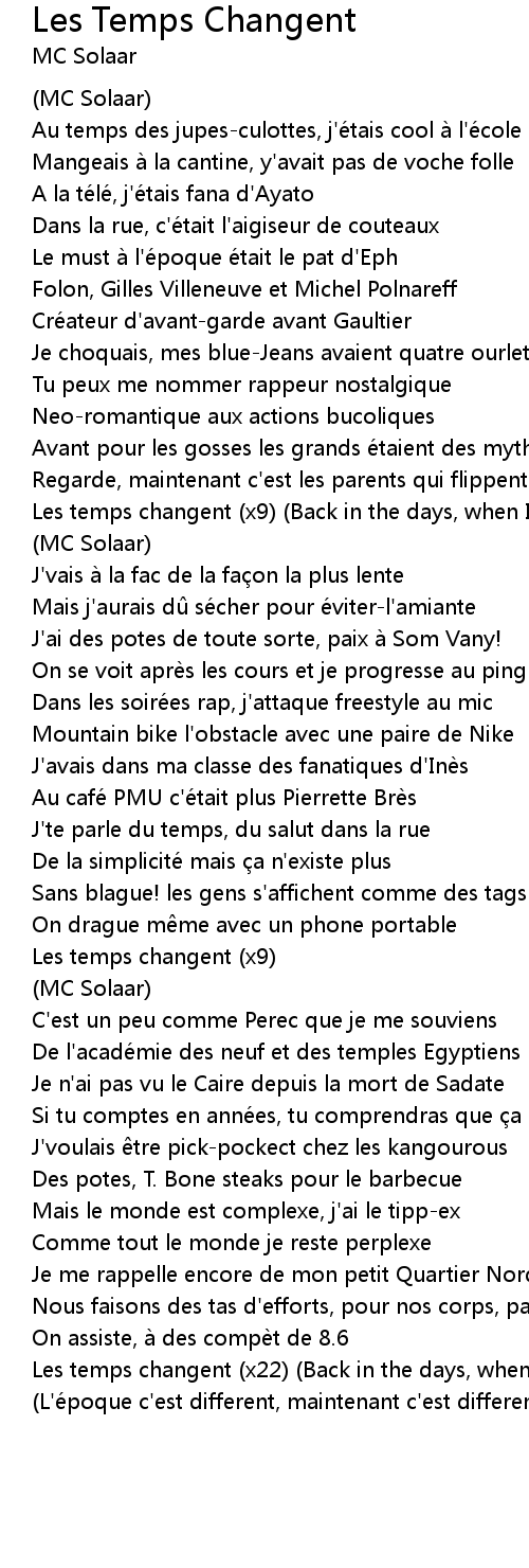 | Les temps changent (x9) (Back in the days, when I was a teenager) | |