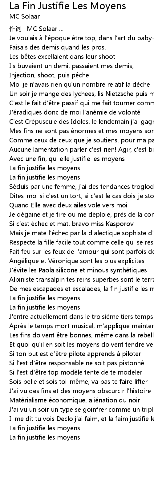 | Mes fins ne sont pas e normes et mes moyens sont re duits | |