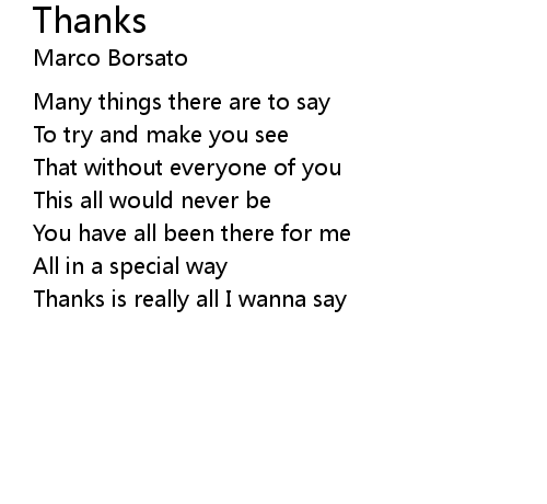 | Thanks is really all I wanna say |