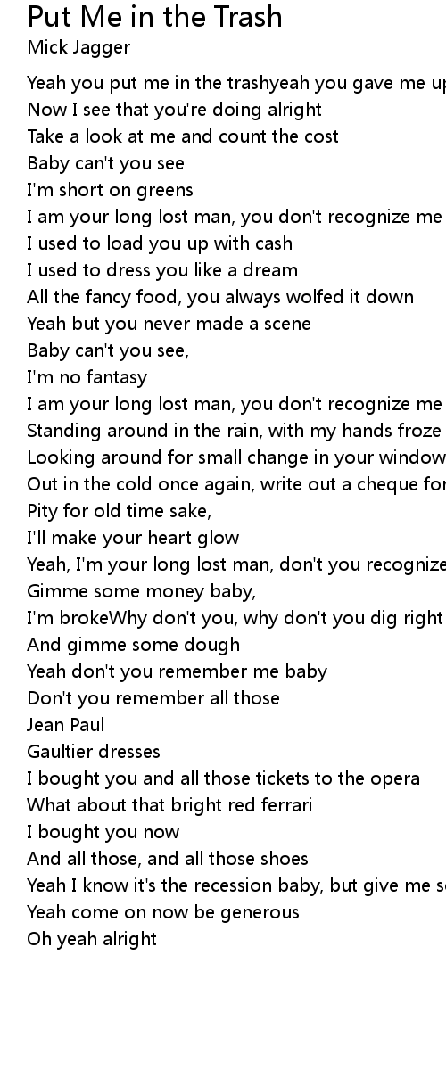 Yeah you put me in the trashyeah you gave me up for lost |