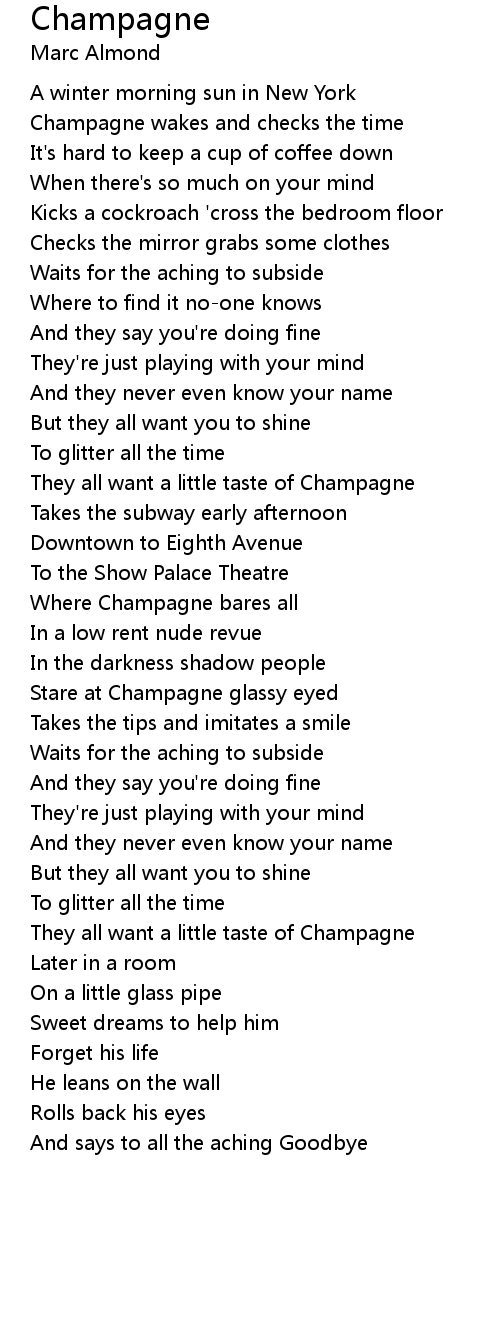 Stare at Champagne glassy eyed |