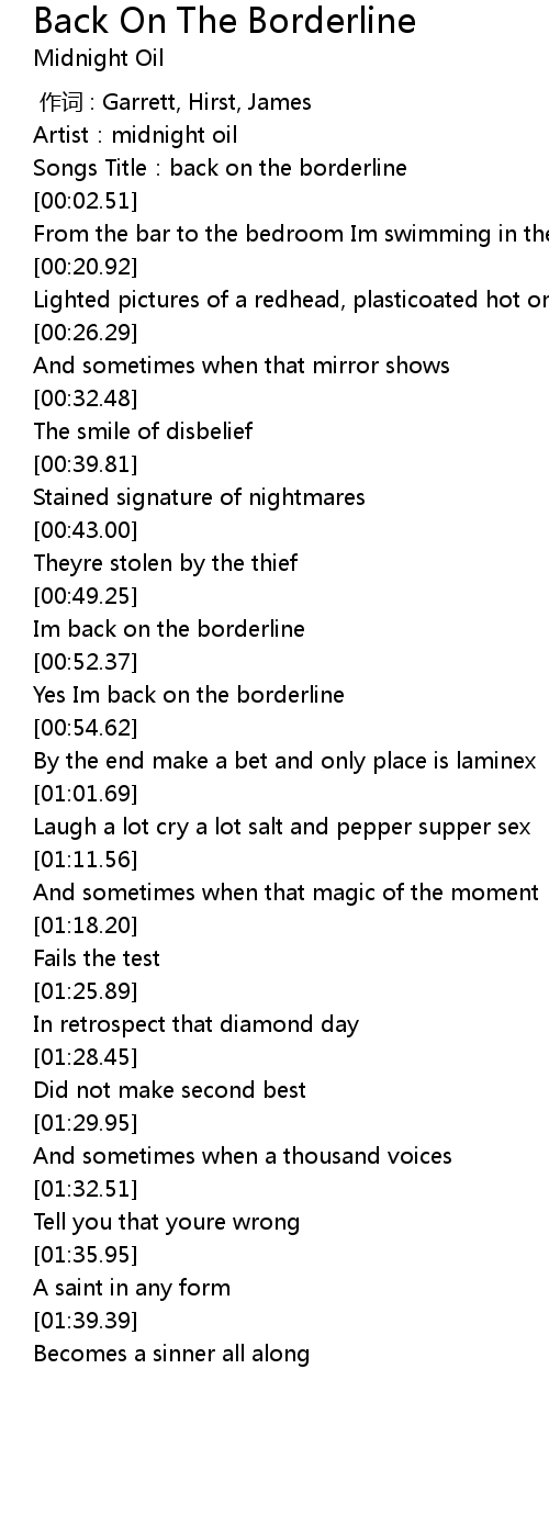 | [00:00.00] | 作词 : Garrett, Hirst, James |