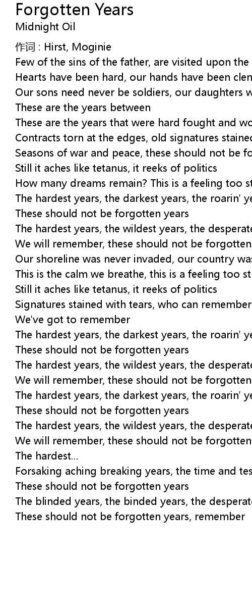 | Song | Forgotten Years |