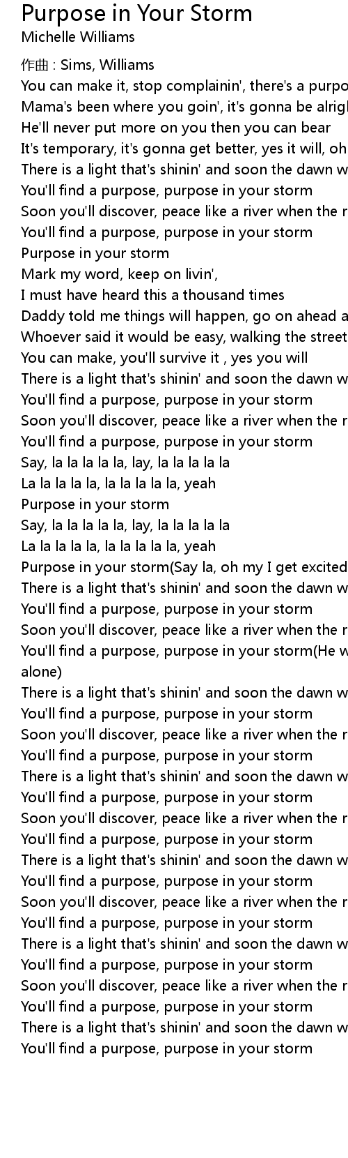 | Purpose in your storm(Say la, oh my I get excited) | |