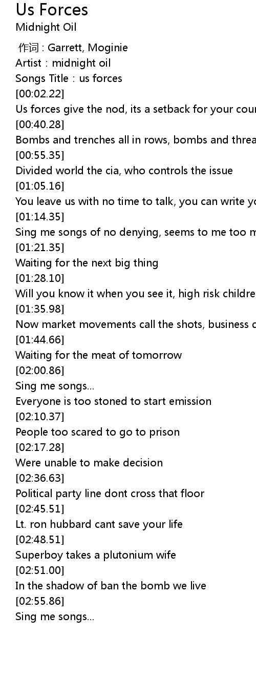 | [00:33.16] | Us forces give the nod, its a setback for your country |