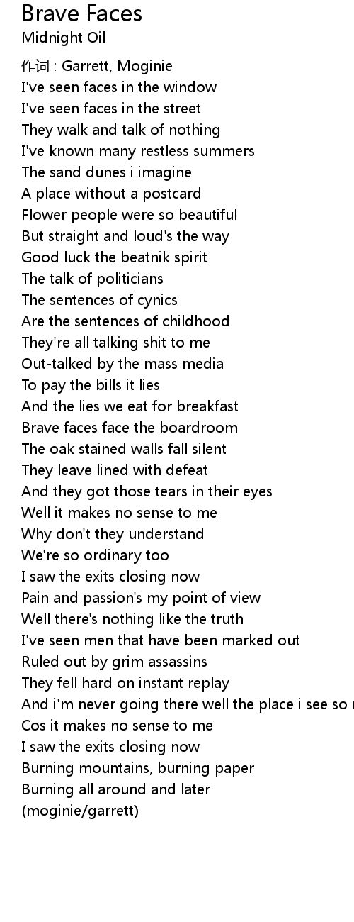 | Song | Brave Faces |
