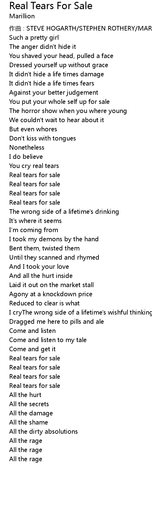 | Song | Real Tears For Sale |
