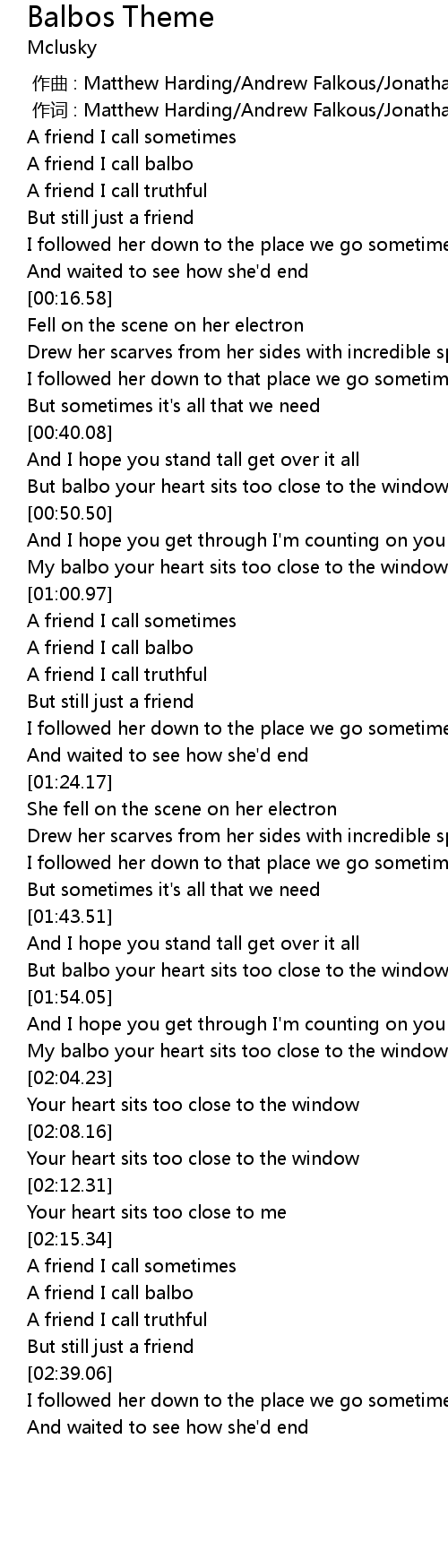 | [02:33.17] | A friend I call balbo |