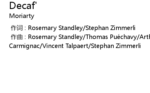 | [00:00.000] | zuò qǔ : Rosemary Standley Thomas Pué chavy Arthur Gillette Charles Carmignac Vincent Talpaert Stephan Zimmerli |