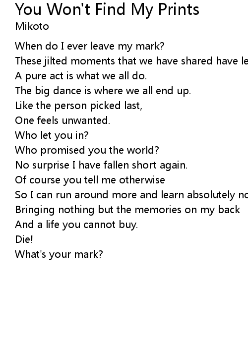 | Song | You Won't Find My Prints |