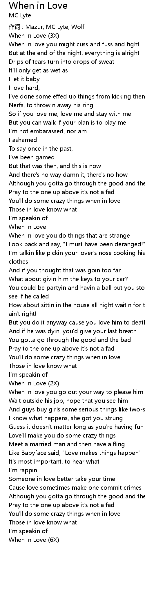 | 作词 : Mazur, MC Lyte, Wolf | |