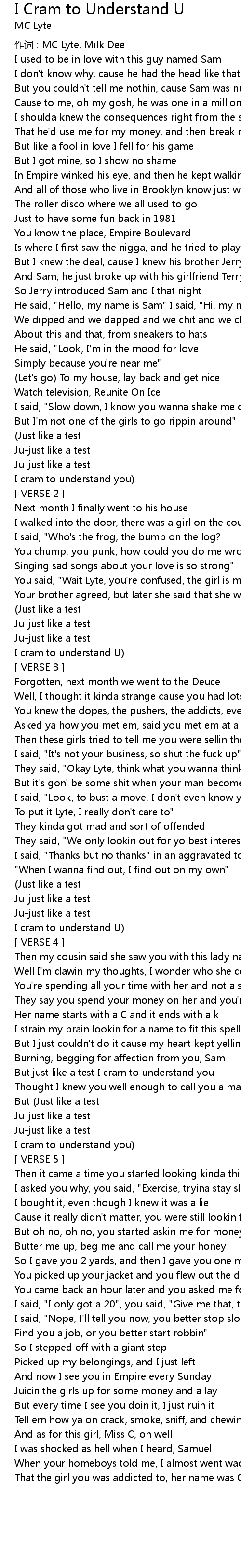 | But just like a test I cram to understand you | |
