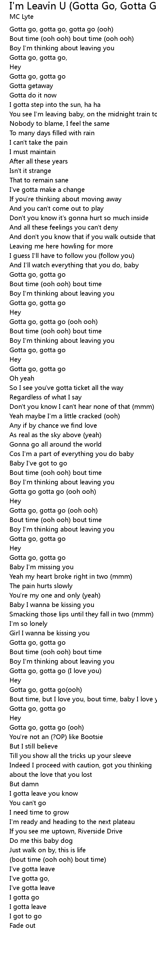 I'm Leavin U (Gotta Go, Gotta Go) Lyrics