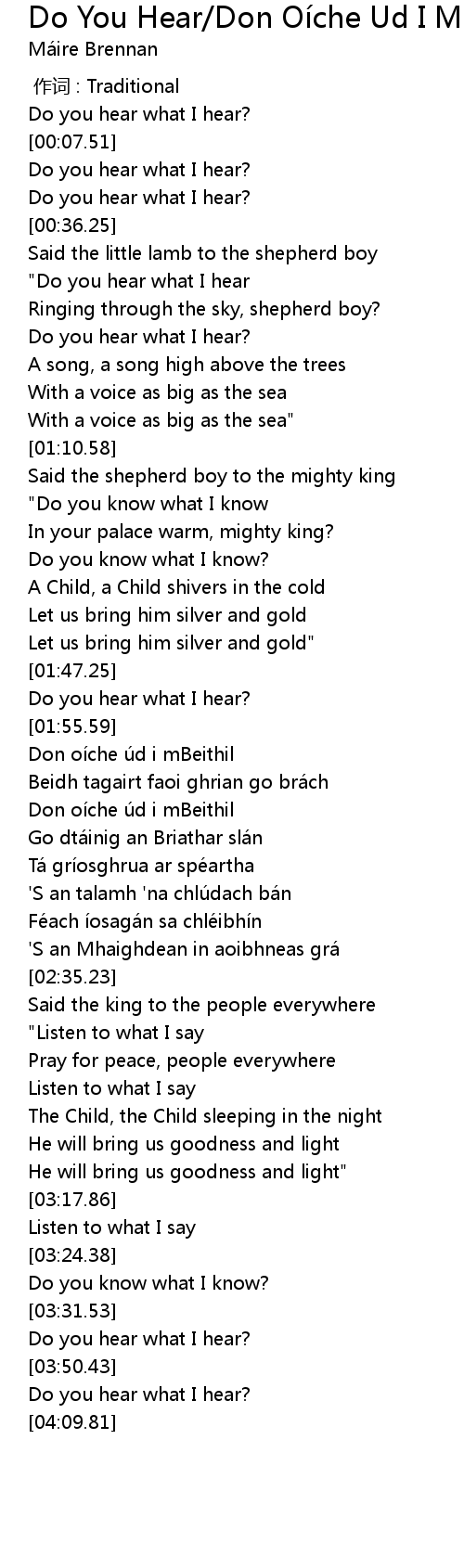 | Song | Do You Hear/Don Oíche Ud I Mbeithil |