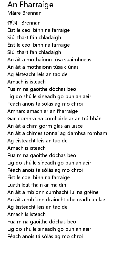| An á it a mbí onn draí ocht dheireadh an lae | |