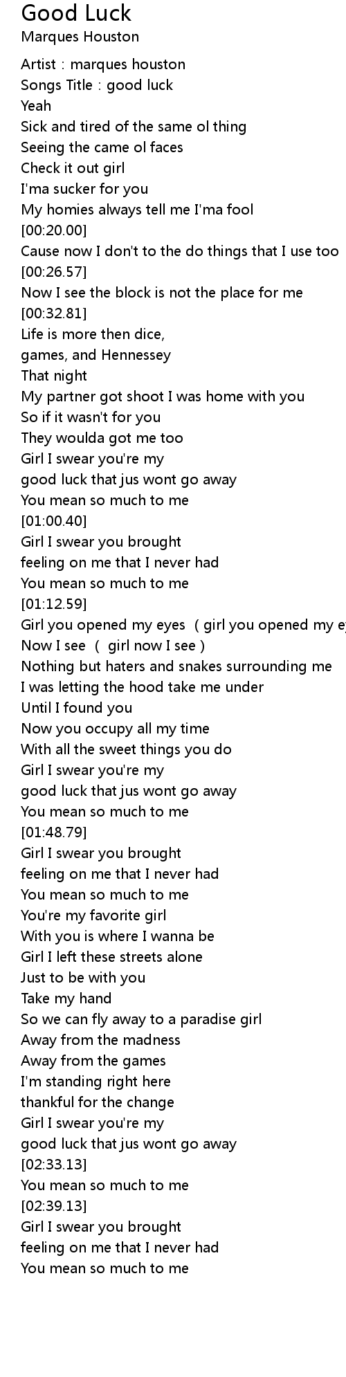 | [00:01.48] | Artist: marques houston |