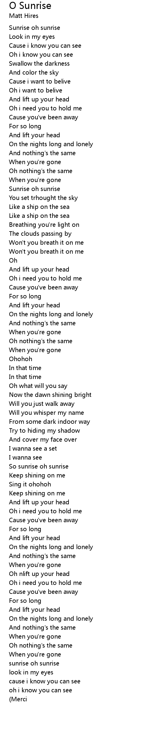 So sunrise oh sunrise |