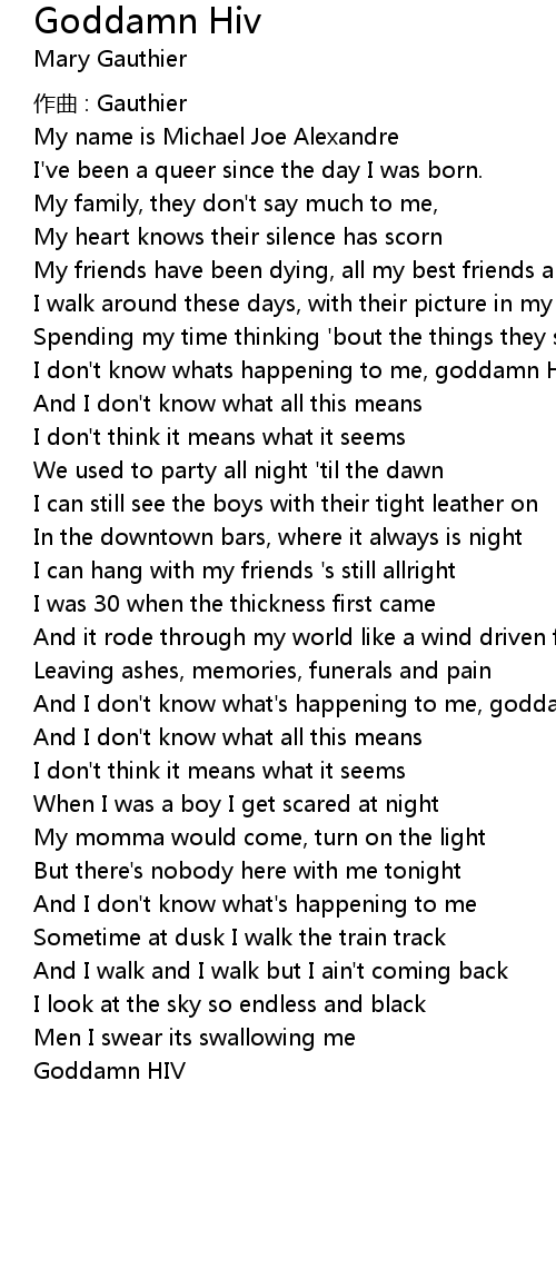 | And I don' t know what' s happening to me, goddamn HIV | |