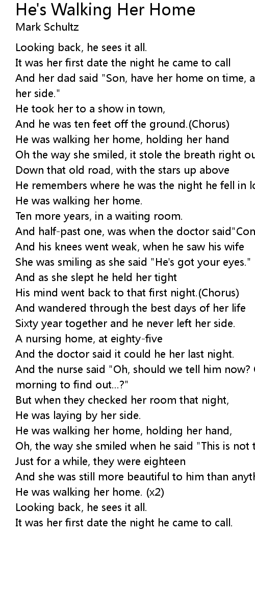 He was walking her home, holding her hand, |