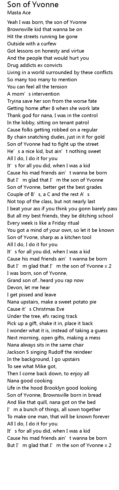 | Yeah I was born, the son of Yvonne | |