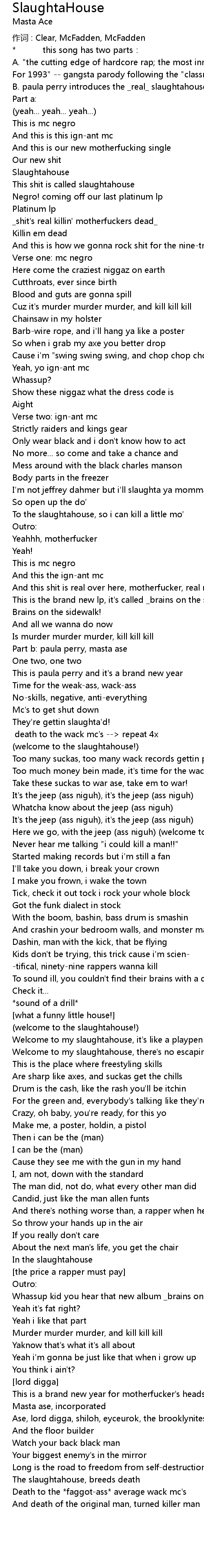 | Welcome to my slaughtahouse, it' s like a playpen | |