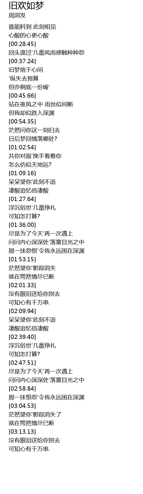 | [00:38.43] | jiù mèng lào yú xīn jiān |