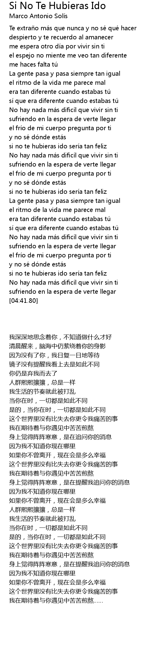 | [04:14.74] | si no te hubieras ido seri a tan feliz |