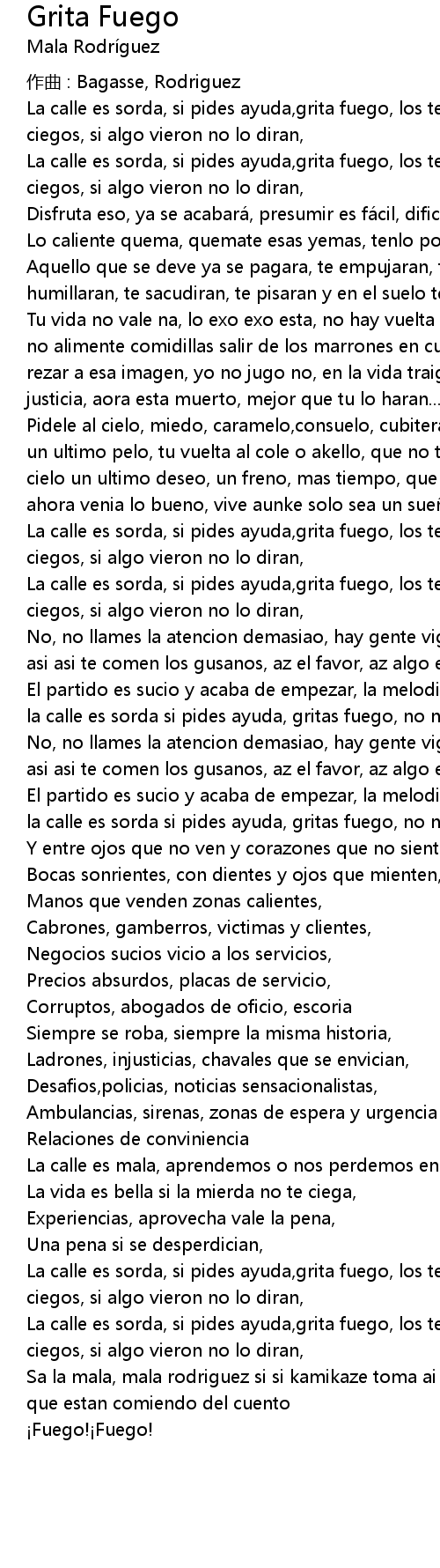 | La calle es sorda, si pides ayuda, grita fuego, los testigos miran pero son ciegos, si algo vieron no lo diran, | |