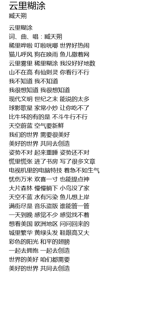 | [00:36] | yún lǐ wù lǐ xī lǐ hú tú wǒ méi hǎo hǎo dì shù |