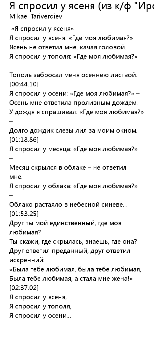 Я спросил у тополя: «Где моя любимая?» – |