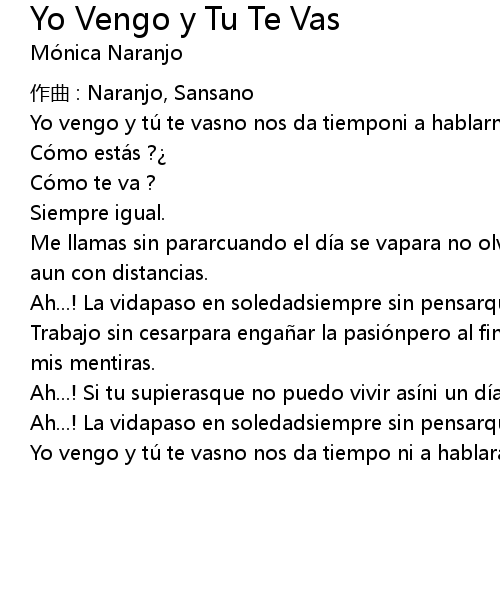 | Yo vengo y tu te vasno nos da tiemponi a hablarni de preguntar | |