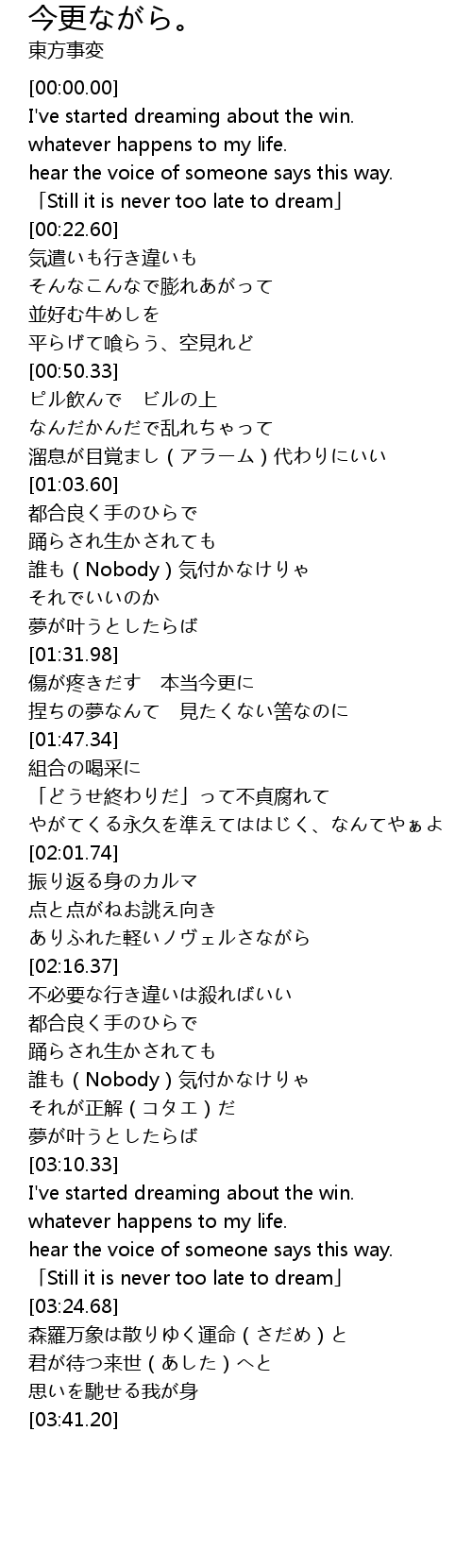 | [03:20.55] | 「Still it is never too late to dream」 |