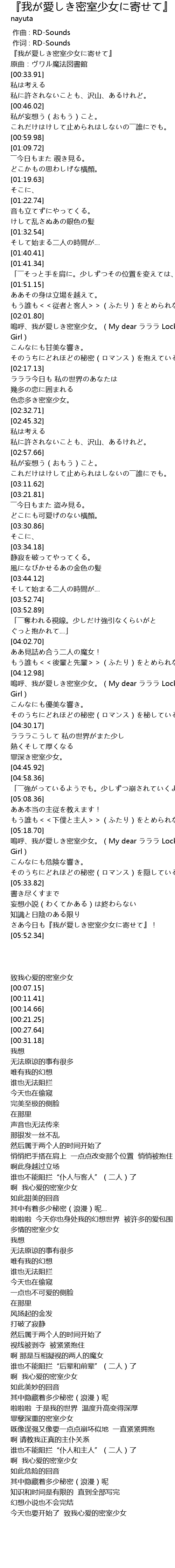 | [05:19.27] | 嗚呼、我が愛しき密室少女。(My dear ラララ Locked Girl) |