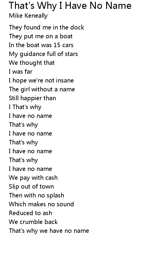 | Song | That's Why I Have No Name |
