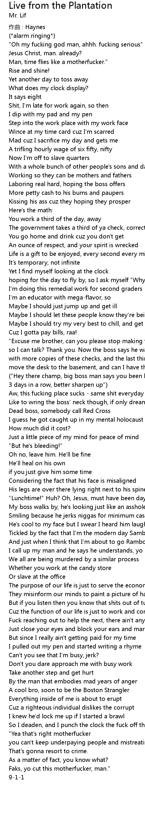 | So I deaden, and I punch the clock the fuck off the wall | |