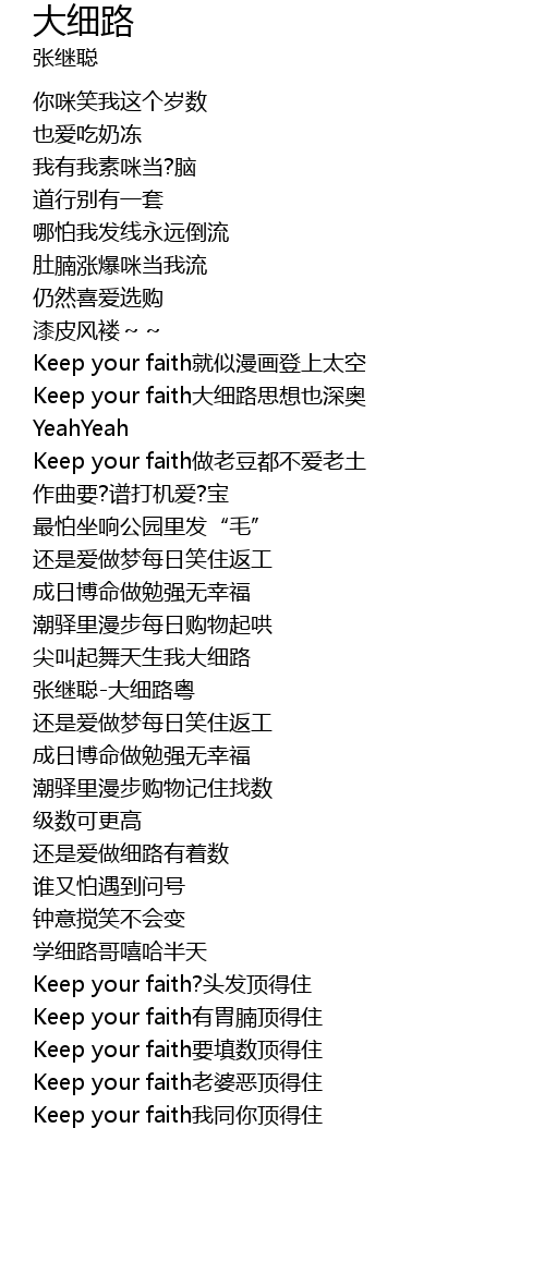| [00:30.20] | Keep your faith大细路思想也深奥 |
