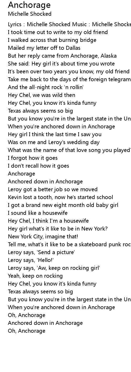 | When you' re anchored down in Anchorage | |