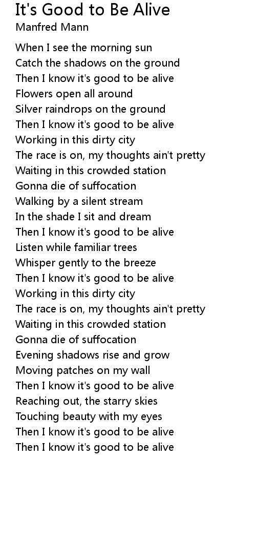 It's Good to Be Alive Lyrics
