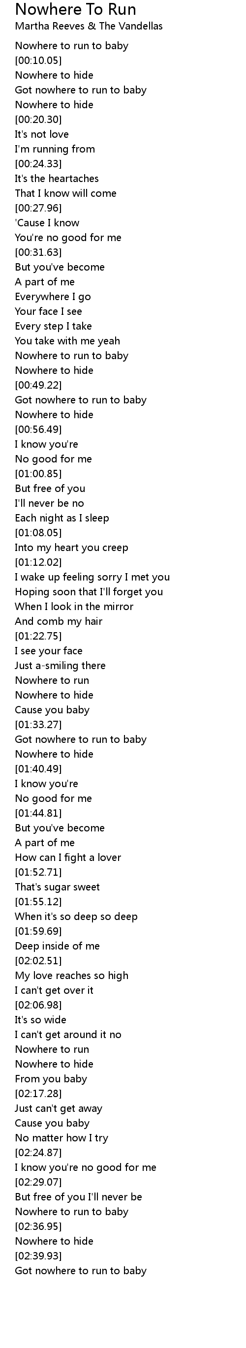 Nowhere to run to baby |