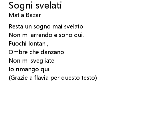 Sogni svelati Lyrics