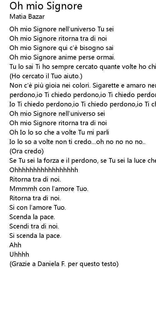 | Song | Oh mio Signore |