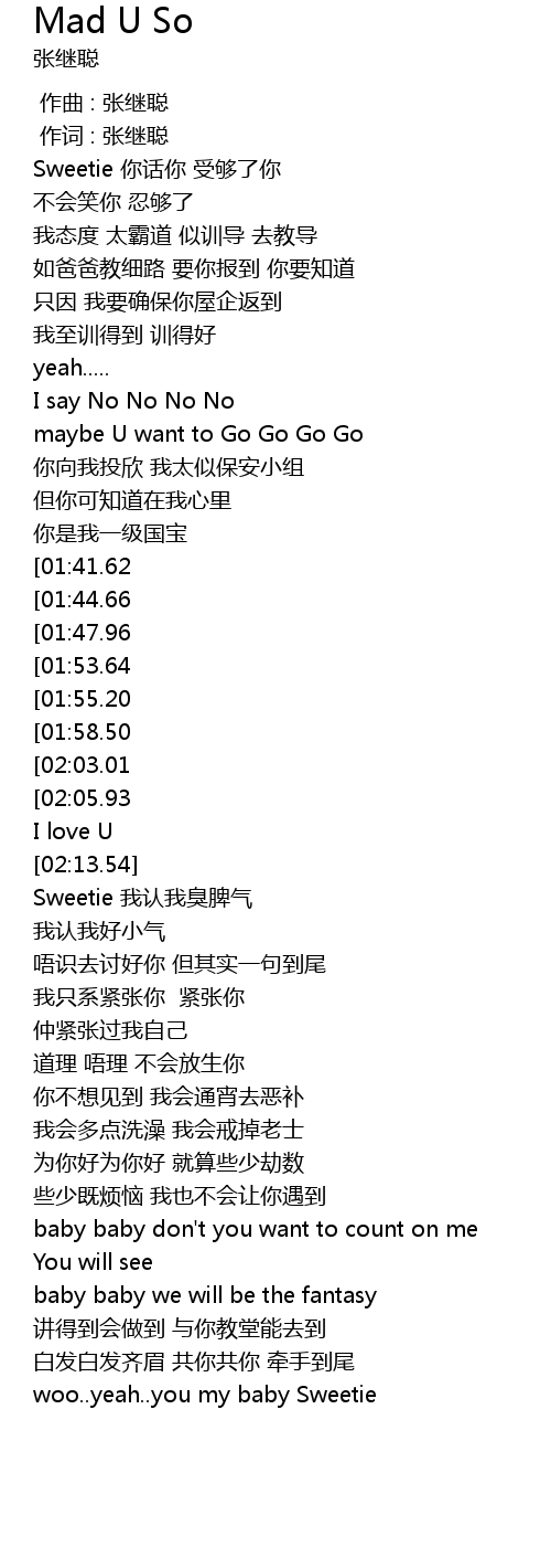 | [02:40.43][01:44.66][00:48.95] | that' s why I Mad U So |