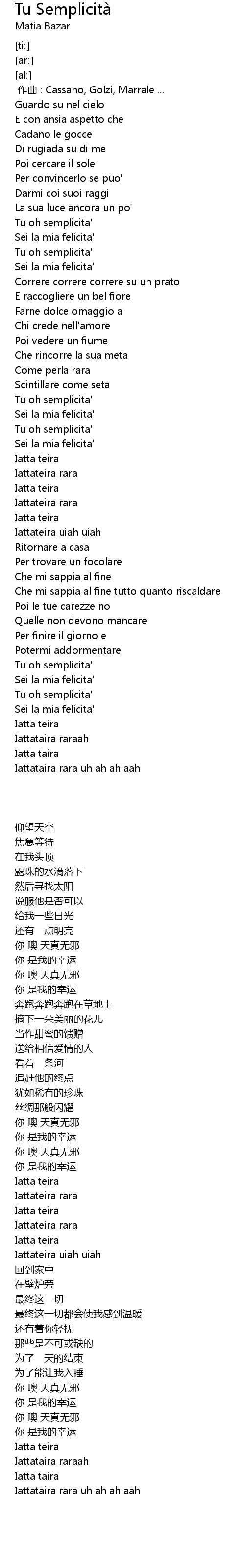 | [01:58.32] | Tu oh semplicita' |