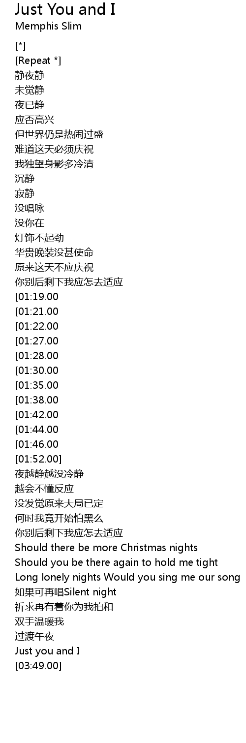 | [02:54.00][01:35.00] | rú shì jiè zài yǒu Silent night |